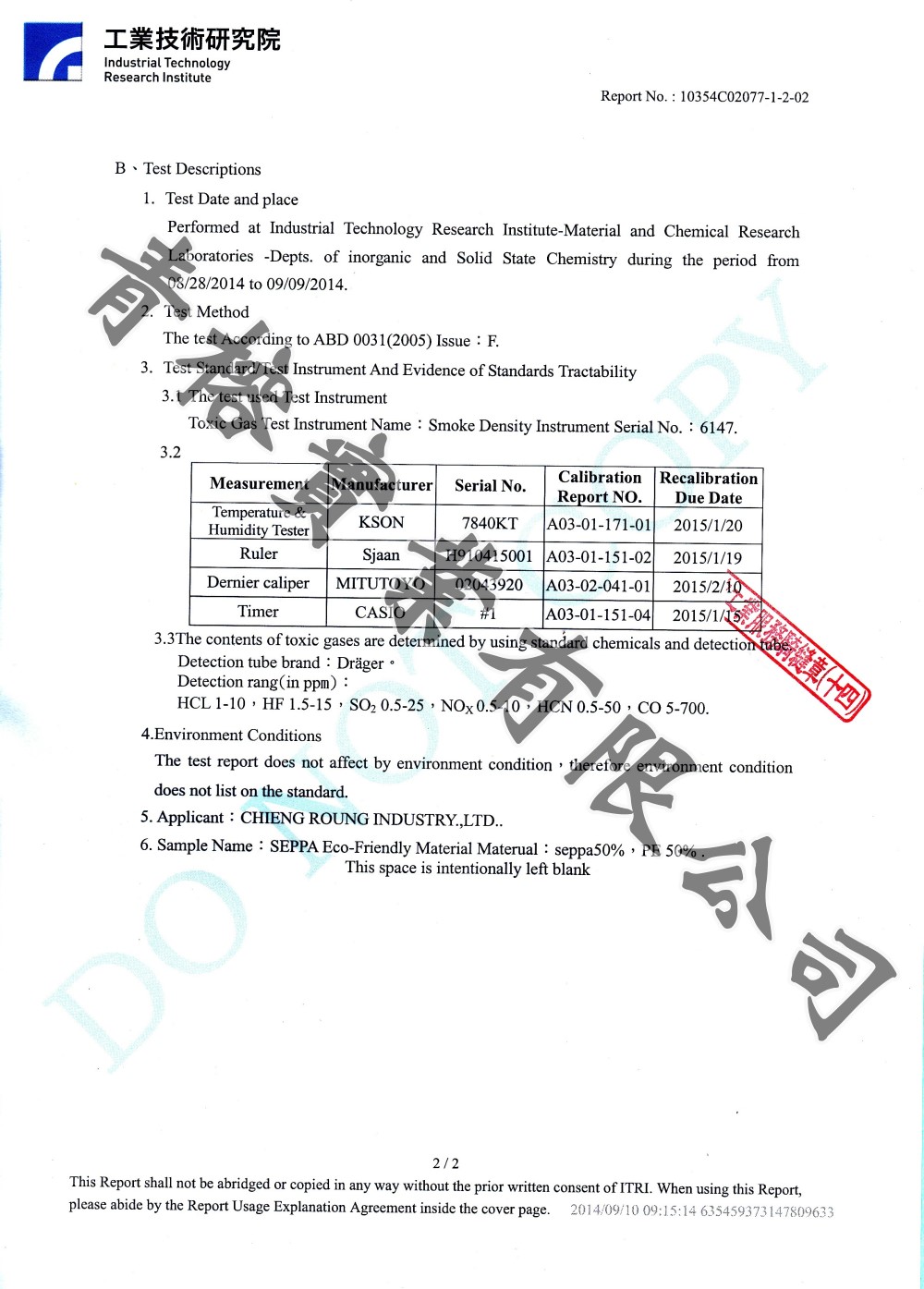 Industrial Technology Research Institute-SEPPA ECO FRIENDLY MATERIAL Toxic Gas (Page 1 to 3)