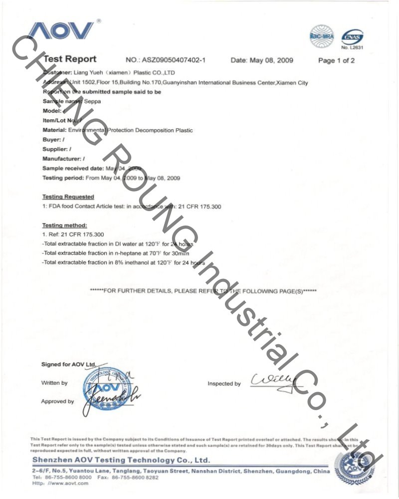 AOV-SEPPA FDA food-contact approval (Page 1 to 2)